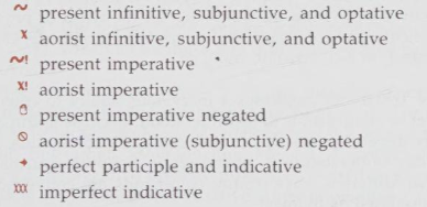 CONTINUOUS ACTION HABITUAL ACTION OFTEN REFLECTS A LIFESTYLE (If you still use a paper Bible, to help identify the present tense place a "tilde" [ ˜ ] over the verb and designate imperatives with an ! after the tilde symbol) (see note) |