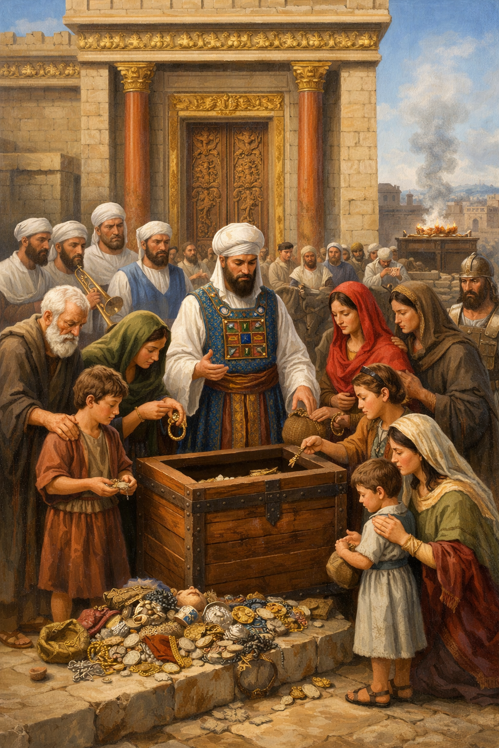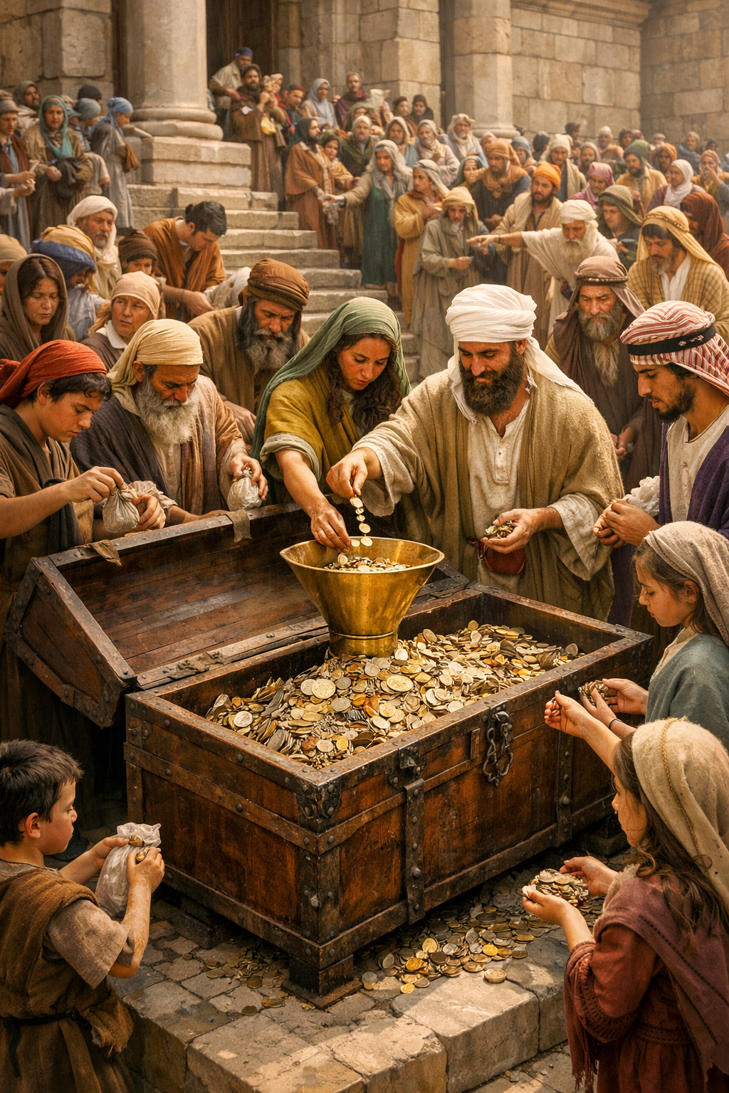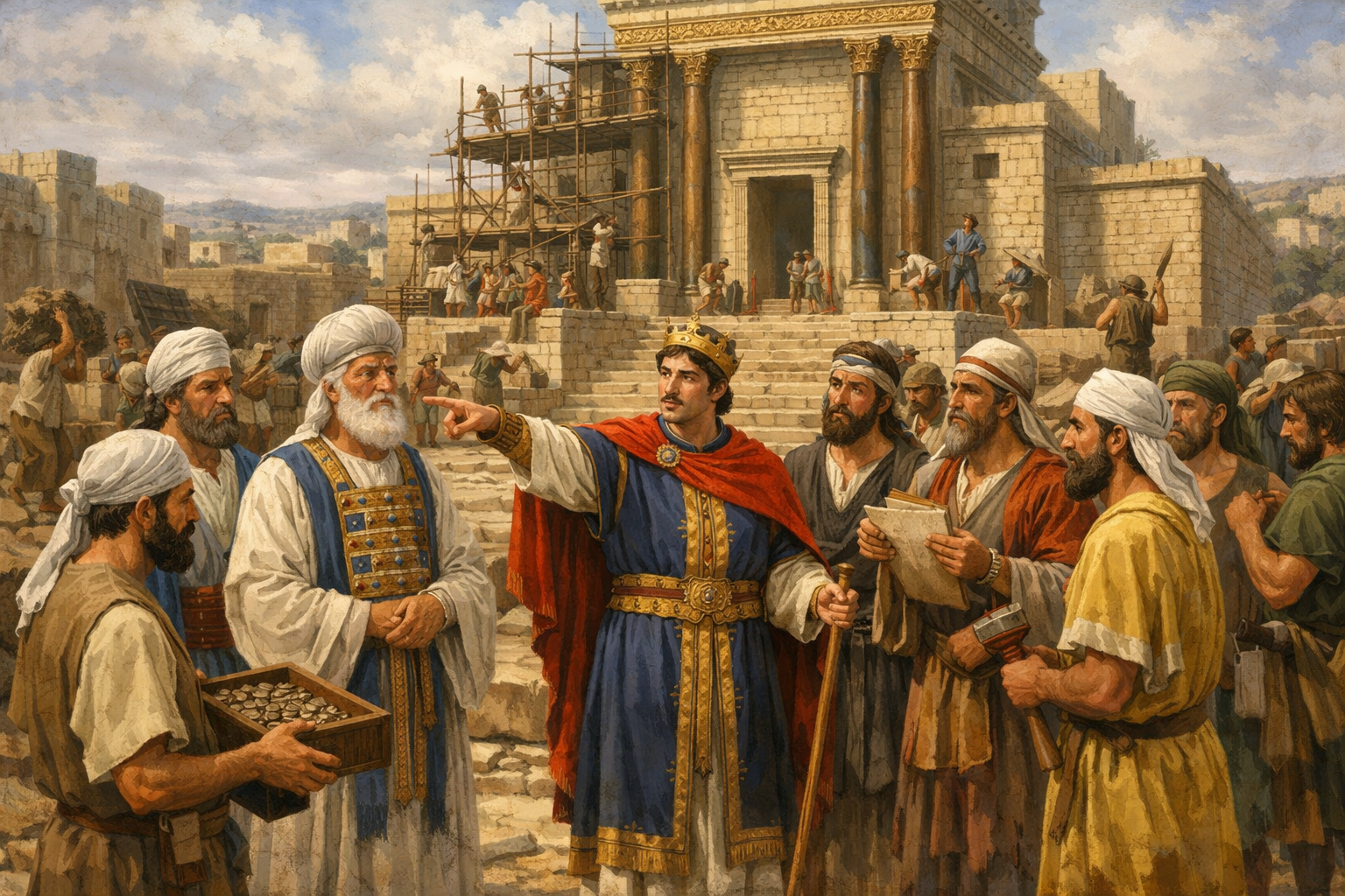When Joash’s chest at the temple got full, at least two men (not one!) would empty it, the money was given to contractors who hired workers to get the job done. The parallel account (2 Kings 12:15) states that they didn’t even require an accounting from those who paid the workers, since they dealt faithfully.