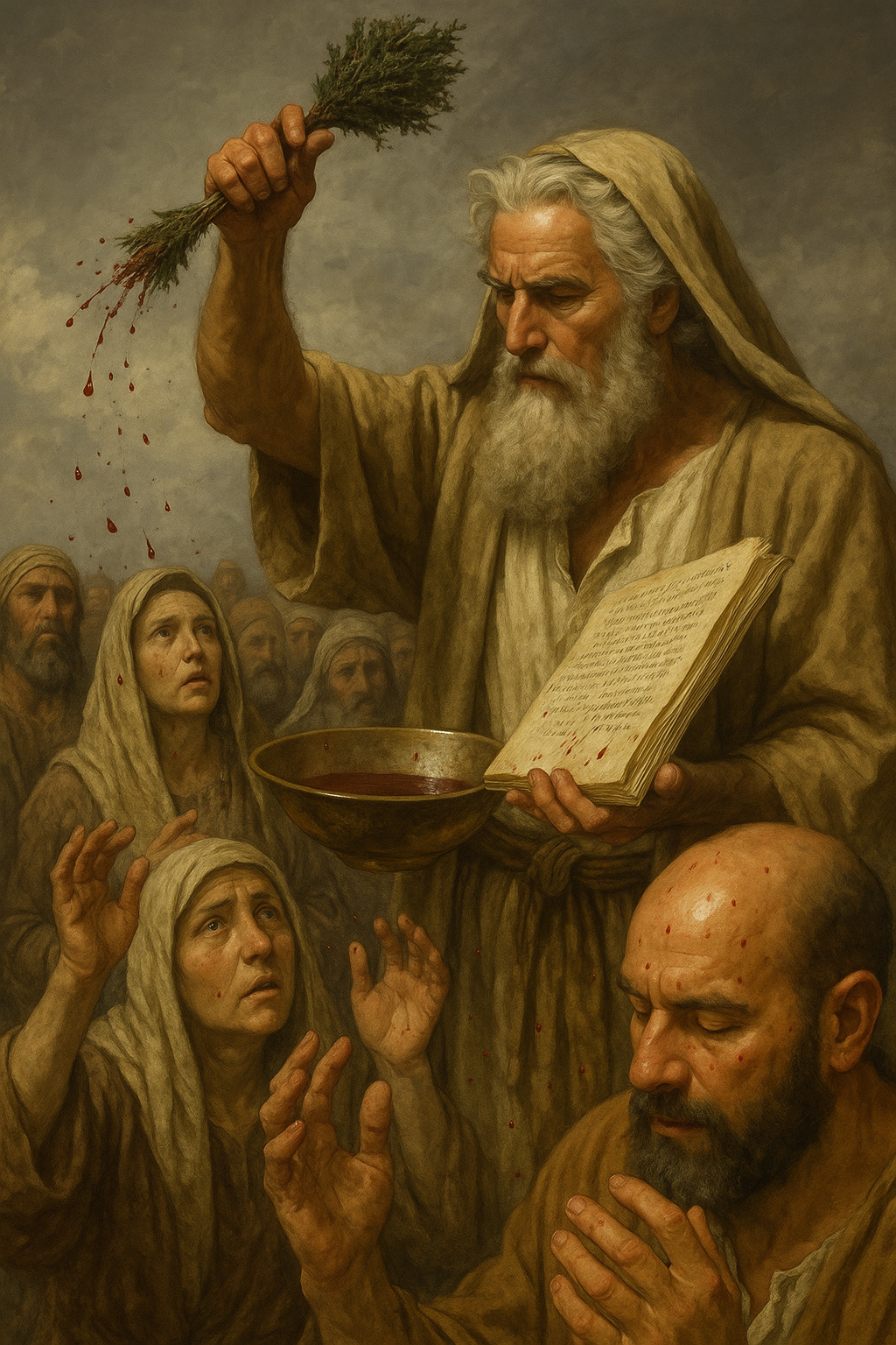 Blood was sprinkled on the book, the people, and the tabernacle/furnishings (Heb 9:19–21; Exod 24:6–8). This symbolized: Death as the basis of covenant relationship. The people’s consecration and obligation to obey. God’s acceptance of the covenant through substitutionary sacrifice.