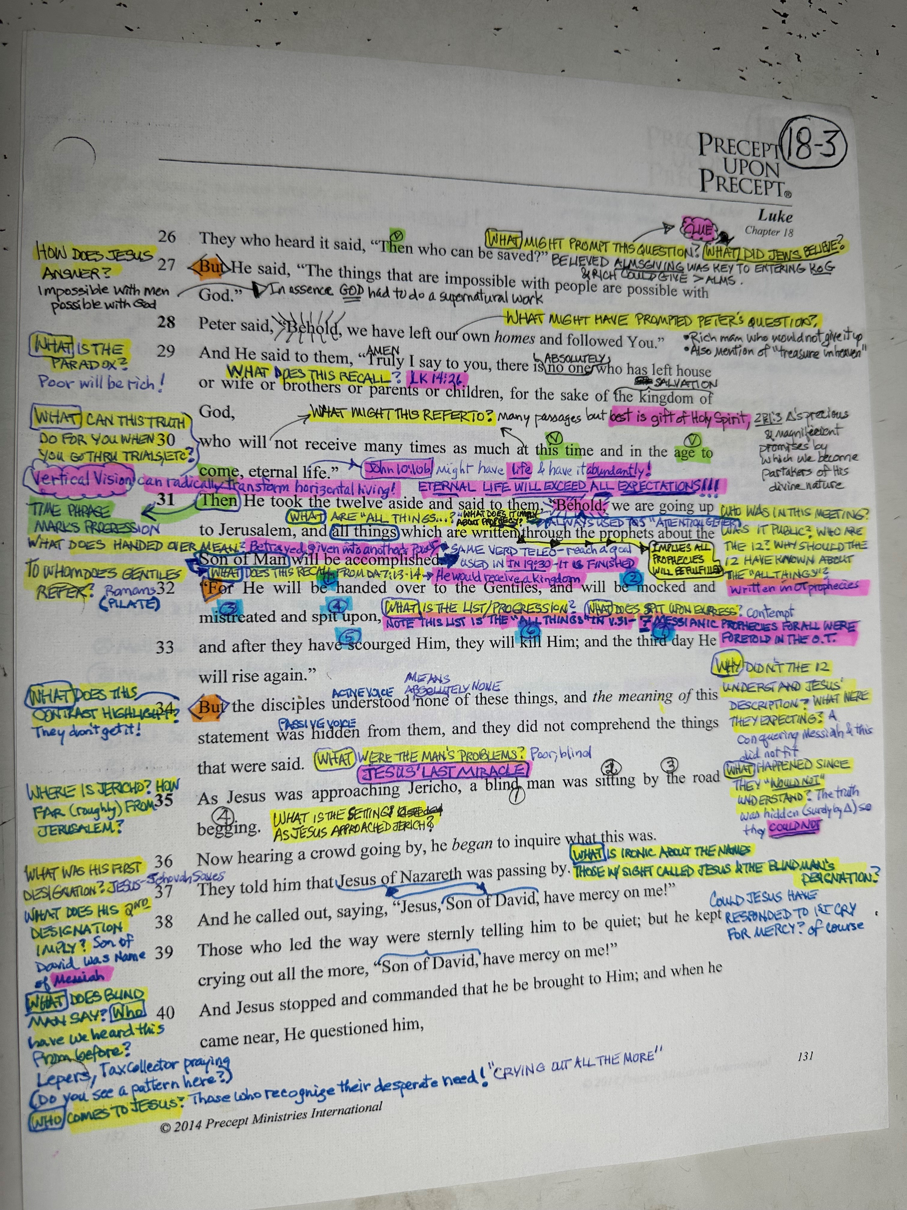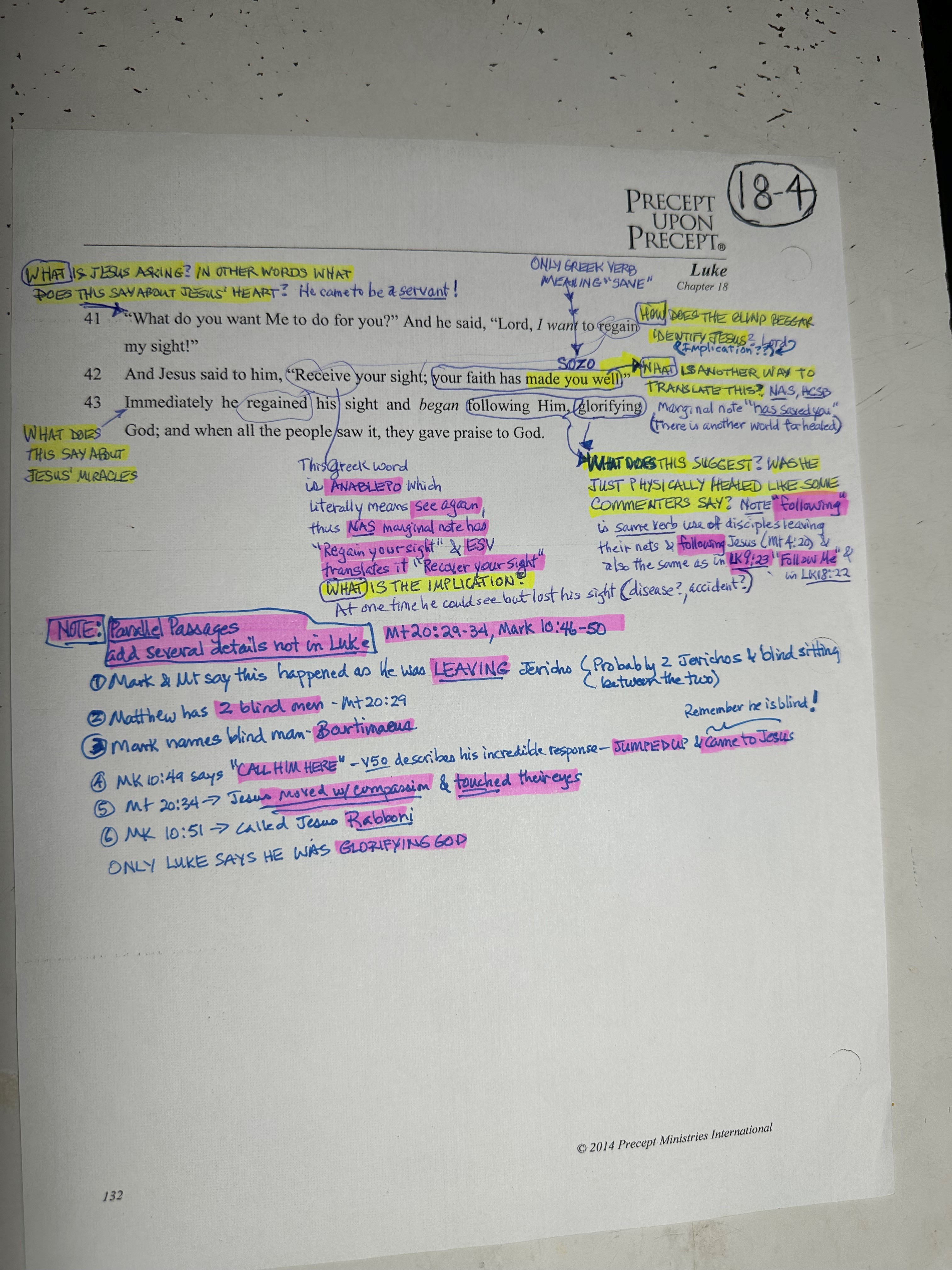 That said, below are the 5W/H questions for each verse in this chapter (click page to enlarge). This is not neatly typed but is handwritten and was used for leading a class discussion on this chapter, so you are welcome to use it in this "as is" condition...