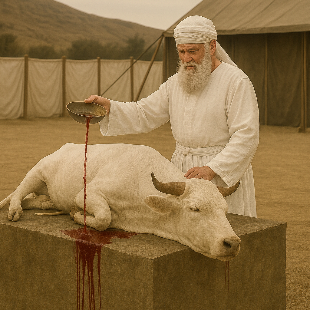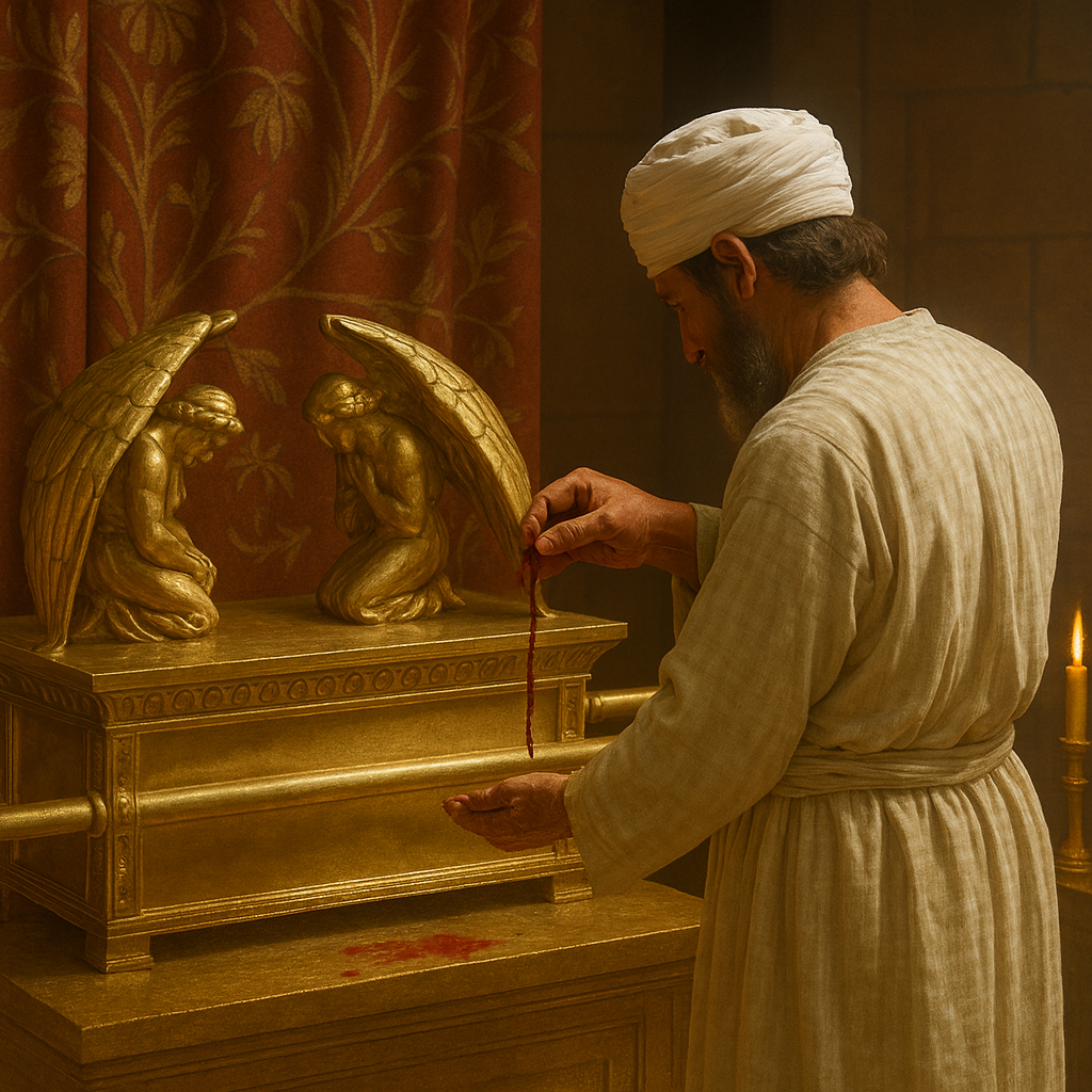 | Lev 16:11–14 — Blood of the bull sprinkled on/before the mercy seat. | Heb 9:21–22 — Without shedding of blood there is no forgiveness. | Heb 9:12 — Jesus presents His own blood in the heavenly sanctuary, securing eternal redemption. |