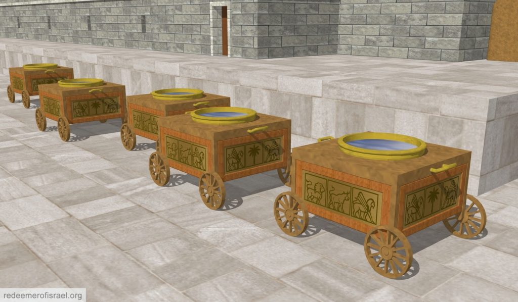 2 Chronicles 4:7-8 Then he made the ten golden lampstands in the way prescribed for them and he set them in the temple, five on the right side and five on the left. 8 He also made ten tables and placed them in the temple, five on the right side and five on the left. And he made one hundred golden bowls.