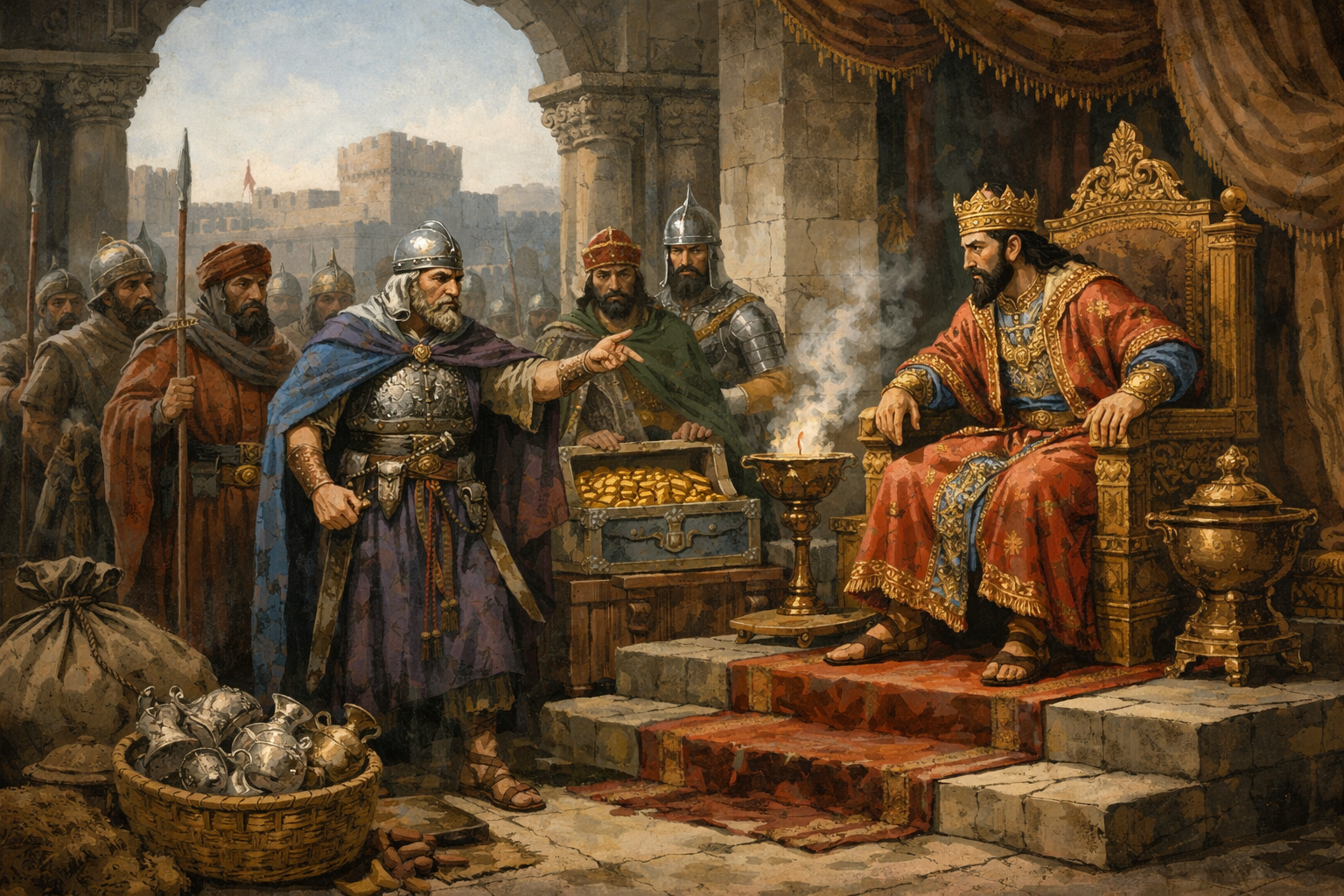 Sure, Tiglath-Pileser would take care of Ahaz’s enemies--for a price! Ahaz had to strip the temple, strip his palace, and extract money from his princes. It was expensive and it wasn’t covered by his insurance! His wives and his princes probably complained about the stainless steel bathroom fixtures that replaced the gold, but a man has to do what he has to do when he needs help in this world!