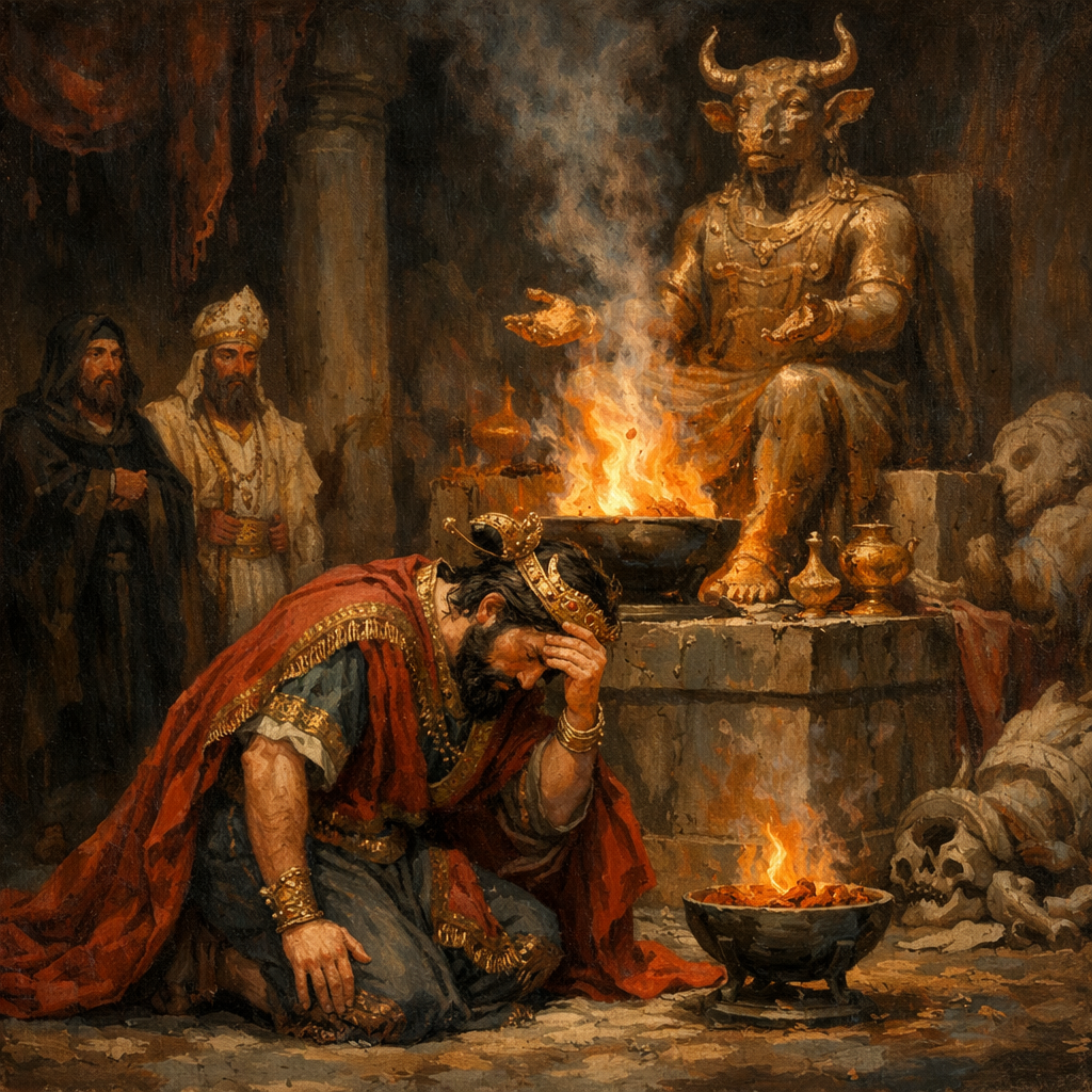 Ahaz burned some of his sons in the fire as an offering to the god Molech. In some cases this involved slaughtering the child and offering him up as a burnt sacrifice; at other times it meant passing the child through the fire without killing him. At the heart of that sort of abomination was self, because the parent was seeking to placate the gods so that it would go well with him. Never mind that it wasn’t going too well with the child! The main thing is my well being, even if it means my child’s pain or death. But it was detestable in God’s sight (Jer. 32:35).