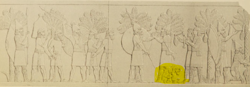 Drawing of king Jehu paying tribute to Shalmaneser III as depicted on the Black Obelisk (see note)