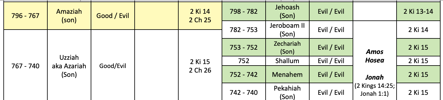 (NOTE: Many consider Amaziah and Hezekiah as "good" kings)