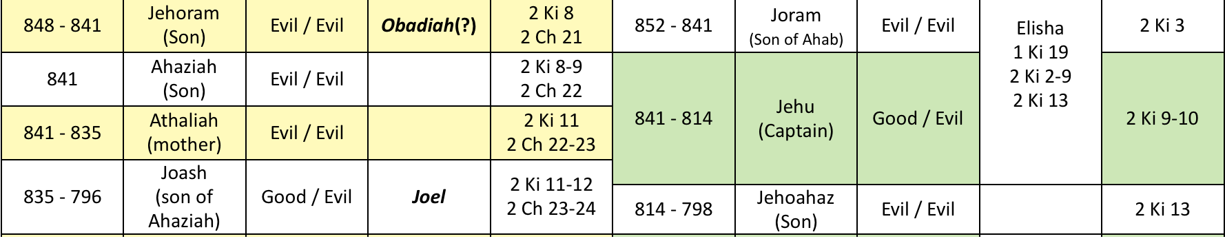• 23rd year of Joash:  2Ki 8:26 10:36 2Ki 11:4,21
