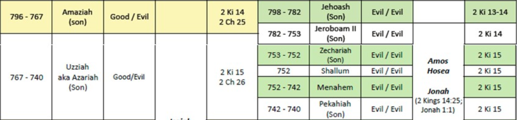 Wiersbe: In this section of 2 Kings, we meet with five kings of Israel who were notorious for their godless character and evil deeds. Four of them were assassinated! Shallum reigned only one month, Zechariah six months, and Pekahiah for two years. Menahem, the cruelest of them all, reigned for ten years, and Pekah for twenty years. As the Northern Kingdom stumbled toward destruction, their rulers hastened the coming of the judgment of God....His given name was Azariah, which means “Jehovah has helped,” but when the became king of Judah at age sixteen, he took the “throne name” Uzziah which means “Jehovah is strength.” The people made him king when his father Amaziah was taken to Samaria after his foolish war against Jehoash, king of Israel (2 Kings 14:13). (Bible Exposition Commentary - Old Testament)