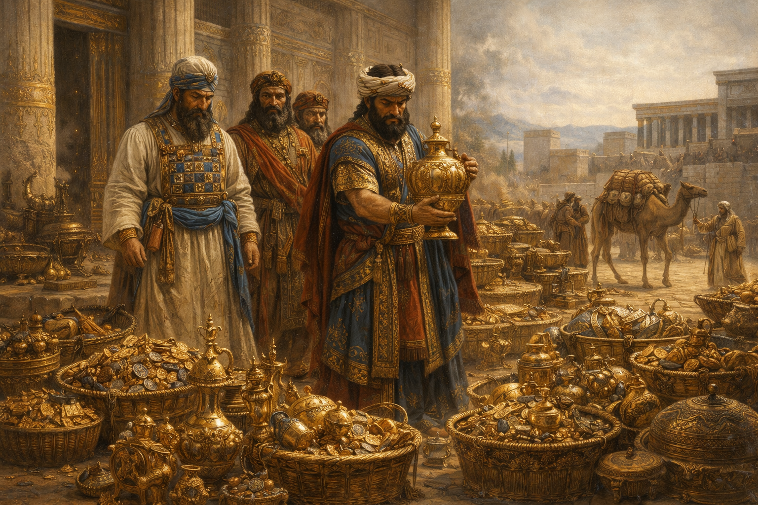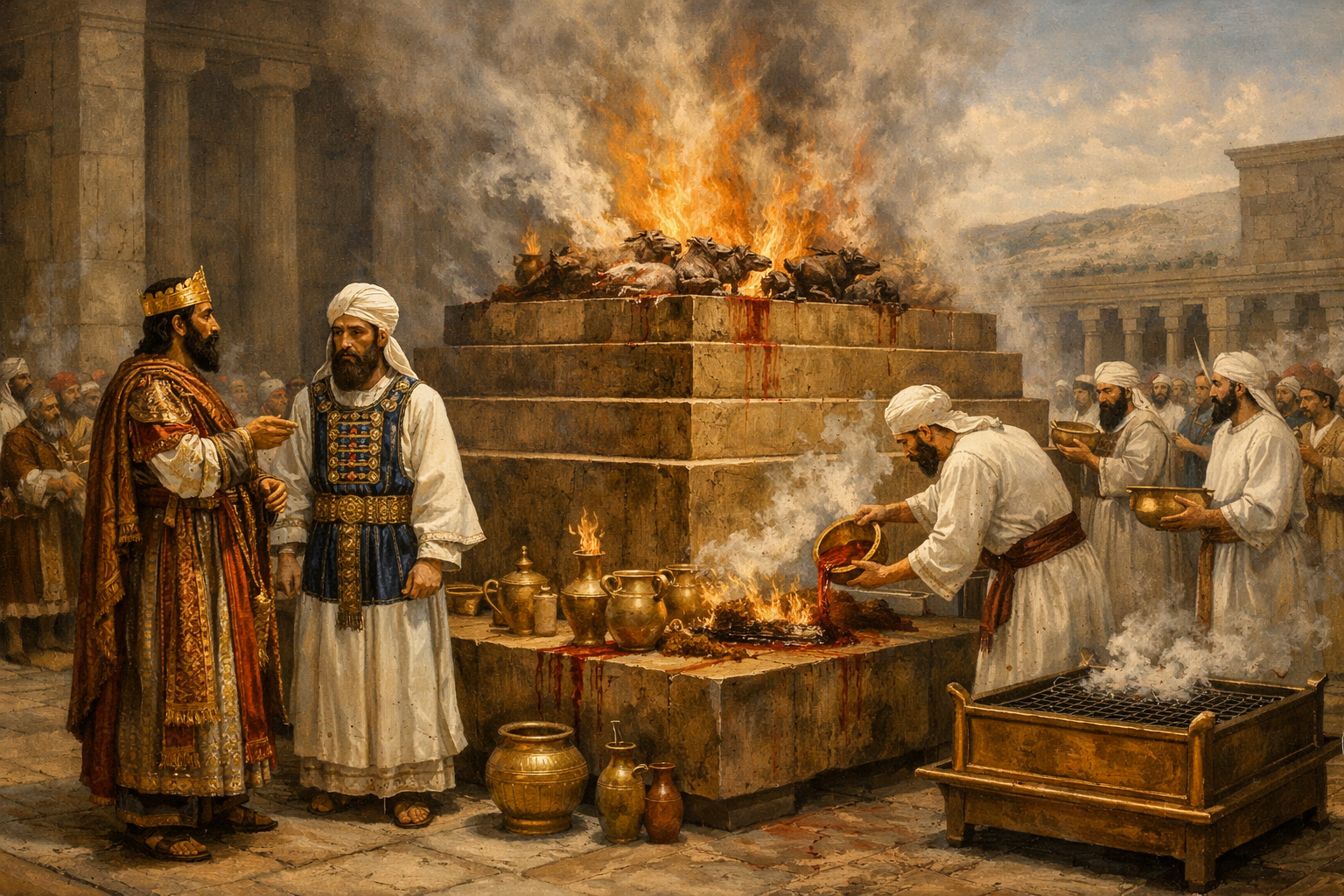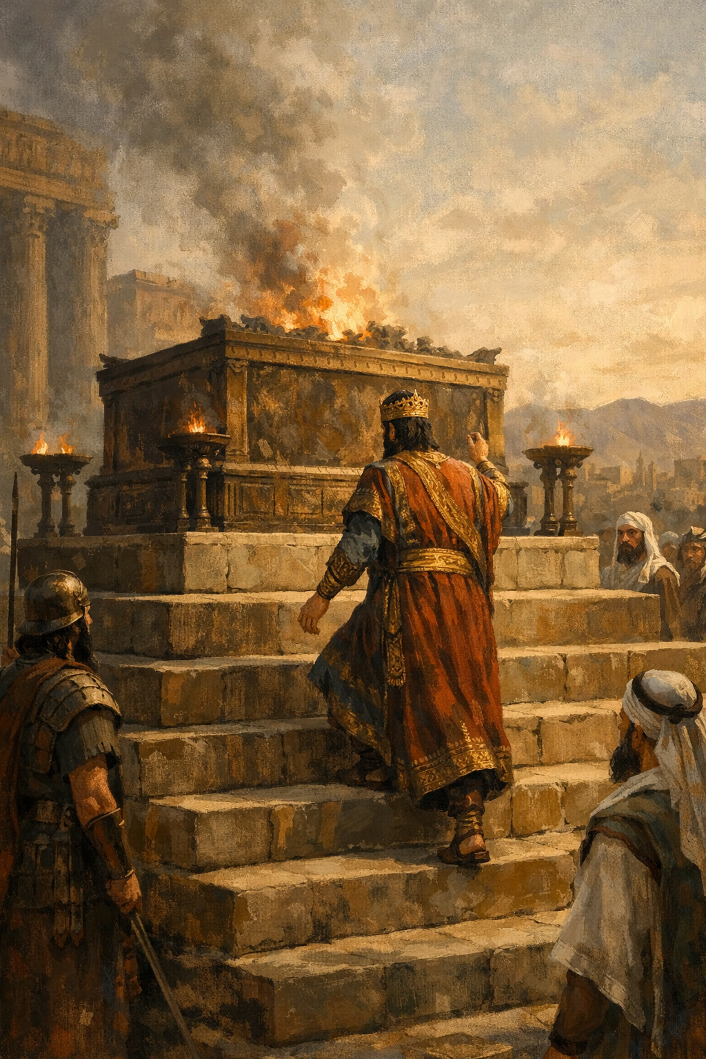 Even more striking was his treatment of the great bronze “sea,” which had rested upon twelve sculpted oxen symbolizing strength and the tribes of Israel. Taking it down from those divinely appointed supports and setting it on a plain stone pavement reduced a holy vessel to something ordinary and utilitarian. These alterations were not neutral renovations but acts of symbolic rebellion, showing that Ahaz no longer respected the patterns the LORD had established. Step by step he reshaped the temple to fit his political alliances and pagan tastes, replacing reverent tradition with expedient innovation and further distancing Judah from the worship that marked them as God’s covenant people.