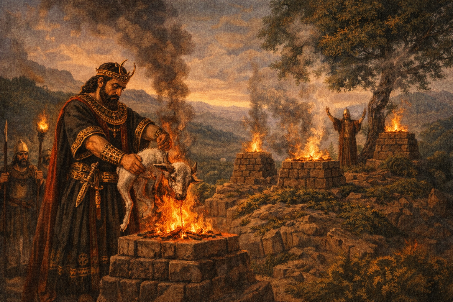 “And he did not do what was right in the eyes of the LORD, as his father David had done, but he walked in the ways of the kings of Israel. He even made metal images for the Baals, and he made offerings in the Valley of the Son of Hinnom and burned his sons as an offering, according to the abominations of the nations whom the LORD drove out before the people of Israel. And he sacrificed and made offerings on the high places and on the hills and under every green tree.”