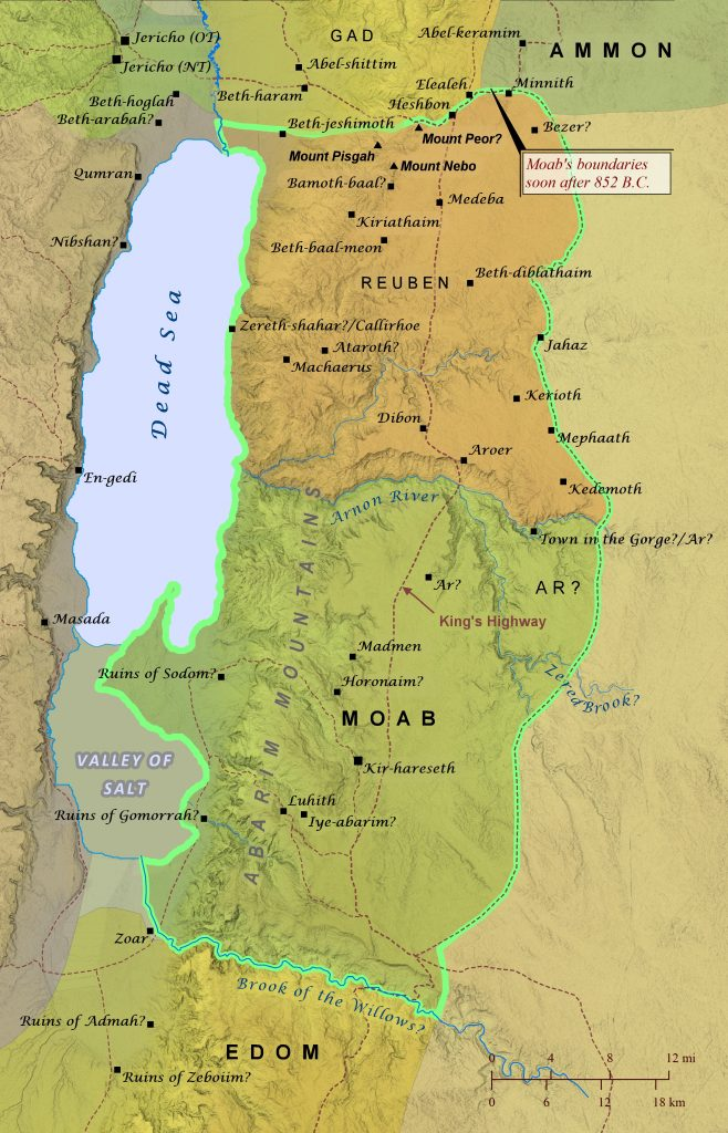 John MacArthur: As the Moabites looked down at the unfamiliar water in the ditches dug in the valley below them, the combination of the sun’s rays and the red sandstone terrain gave the water a reddish color, like pools of blood. Unaccustomed to water being in those places and having heard no storm (see v. 17), the Moabites thought that the coalition of kings had slaughtered each other (v. 23) and so went after the spoils. The coalition army led by Israel defeated the Moabites, who had been delivered into their hands by the Lord (see vv. 18, 24). (Borrow MacArthur Study Bible page 519)