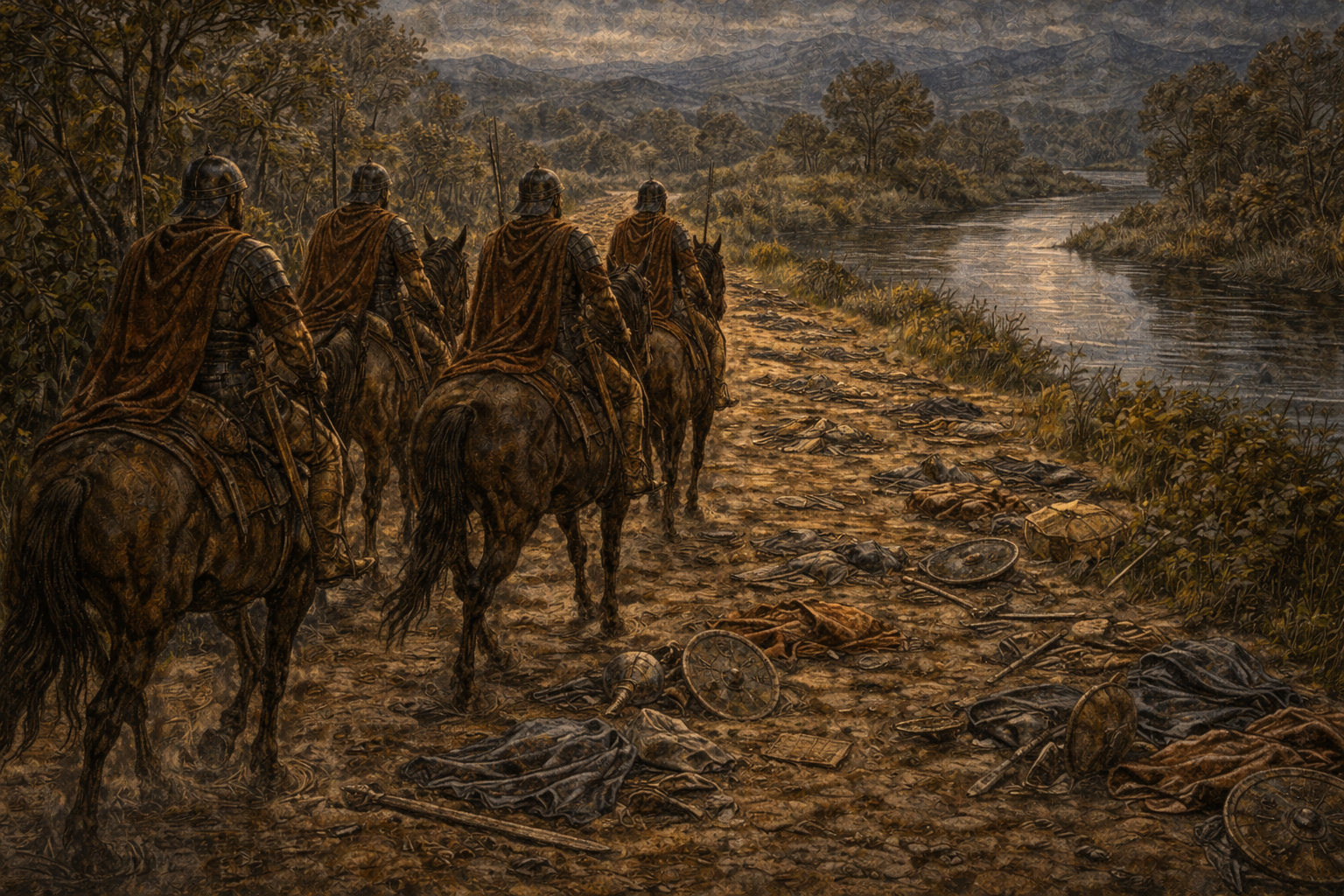 2 Kings 7:15 They went after them to the Jordan, and behold, all the way was full of clothes and equipment which the Arameans had thrown away in their haste. Then the messengers returned and told the king.