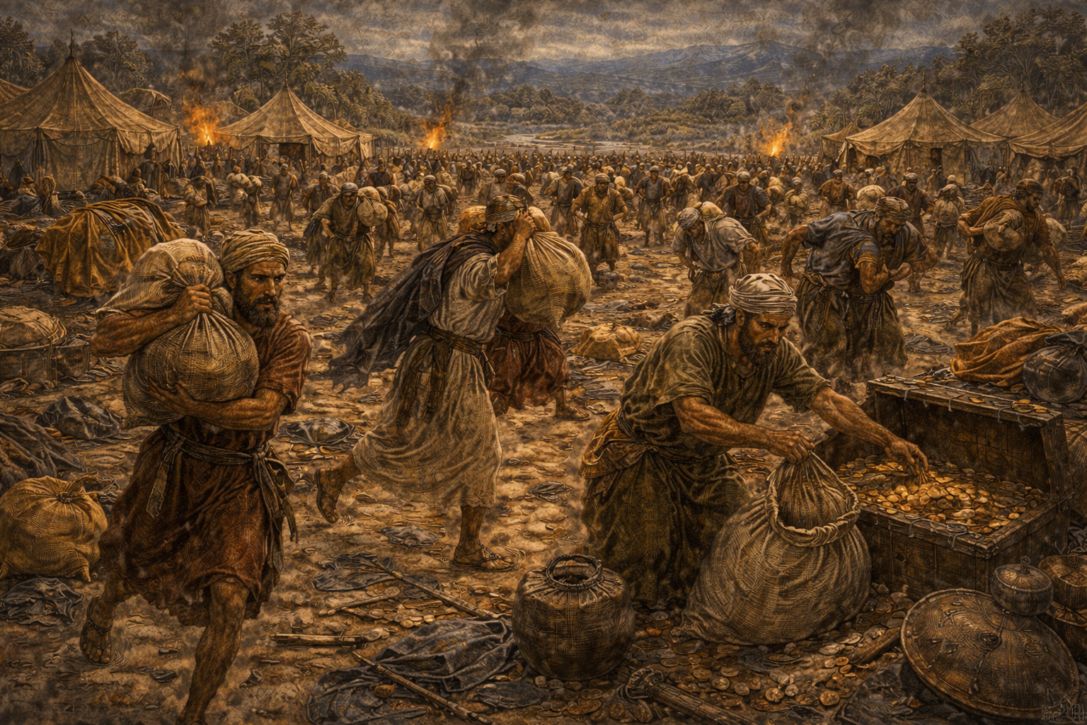 - plundered the camp: 1Sa 17:53 2Ch 14:12-15 20:25 Job 27:16,17 Ps 68:12 Isa 33:1,4,23