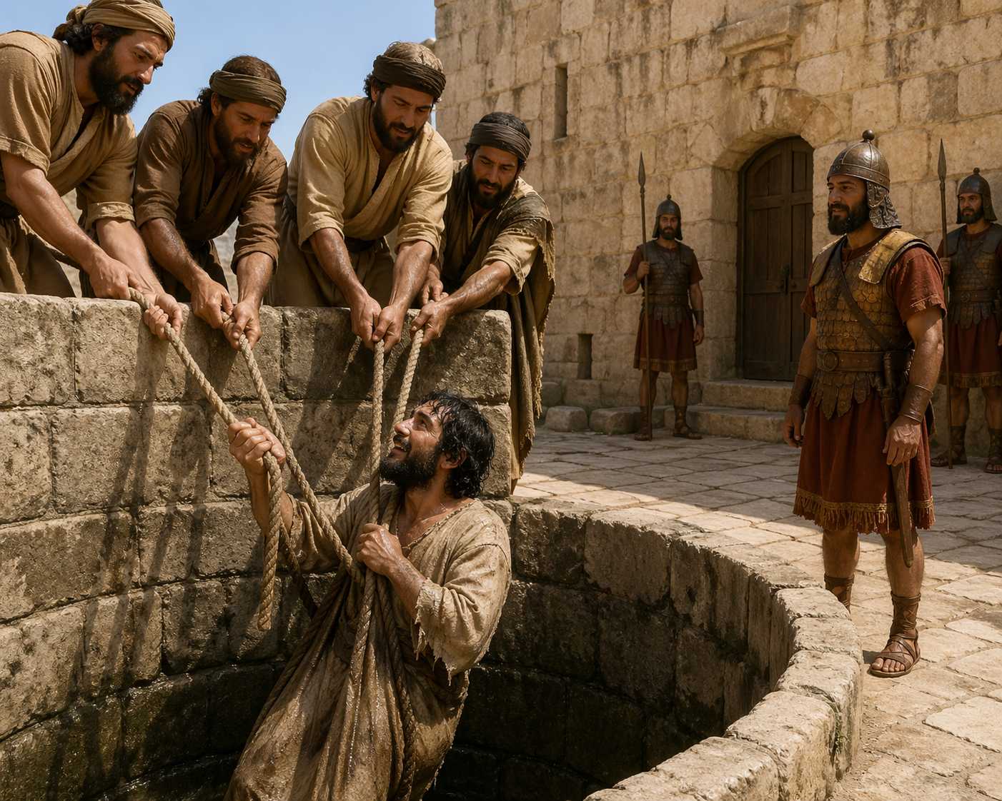 So Jeremiah stayed in the court of the guardhouse until the day that Jerusalem was captured - One man went back to prison, but survived. The other man (Zedekiah) went back to his palace and eventually was killed. Jeremiah 38 ends with captivity of the prophet. Jeremiah 39 describes the captivity and punishment of Zedekiah (Jer 39:1-7)